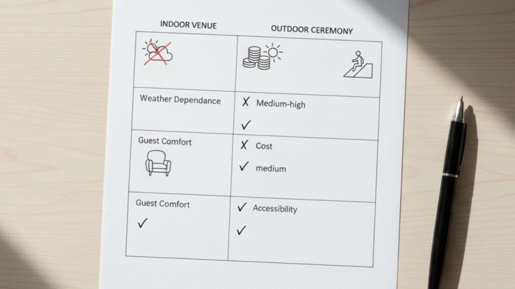 Indoor and outdoor venues each offer distinct atmospheres. Your choice depends on personal preferences, cultural traditions, and practical needs.